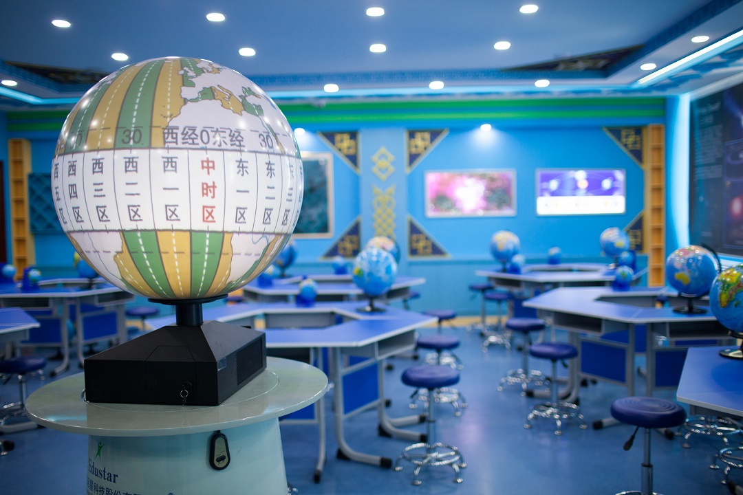 以“數(shù)字化”為主導、數(shù)字星球系統(tǒng)為核心,遵循教育部《中學地理專用教室建設規(guī)范》,配備常規(guī)教學類的交互地圖教學系統(tǒng);創(chuàng)新應用類的虛擬現(xiàn)實VR教學系統(tǒng)、地理AR沙盤、全息教學系統(tǒng);實驗活動類的地理交互學具、地理綜合實踐套裝;并輔以教學通用設備以及環(huán)境創(chuàng)設,能夠把地理課本上的知識更直觀、生動、全方位的精彩呈現(xiàn),讓學生打開傳統(tǒng)的思維模式,以一種更加生動活潑的方式學習地理,有利于教師教學活動的開展和學生學習效率的提高。