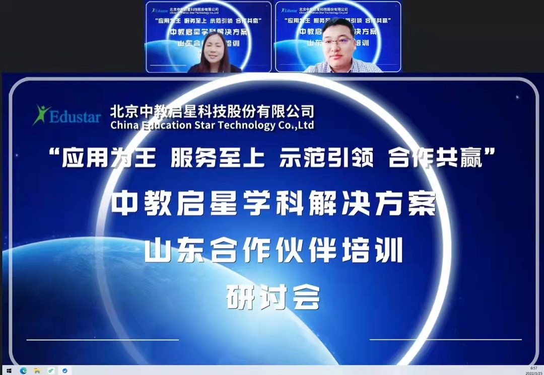 因此,在3月25日上午,中教啟星山東辦事處聯合總部多個部門開展了一場線上培訓研討會。會議主題借用了教育部部長懷進鵬在信息化會議上提出的——“應用為王、服務至上、示范引領、合作共贏”。