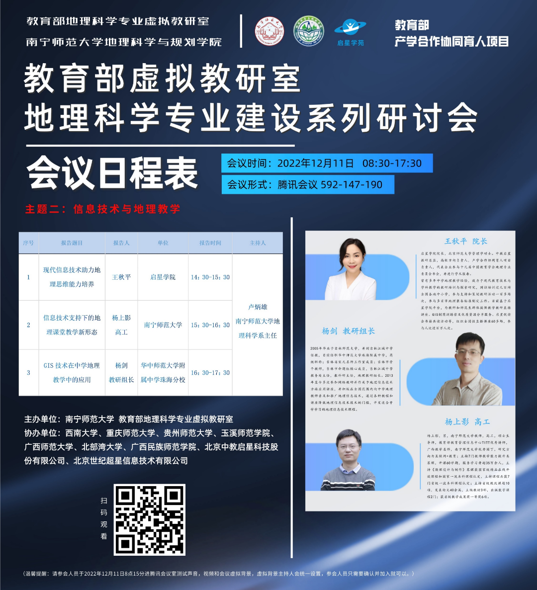 此次研討會由教育部地理科學專業虛擬實驗室、南寧師范大學主辦,西南大學、重慶師范大學、貴州師范大學、玉溪師范學院、廣西師范大學、北部灣大學、廣西民族師范學院協辦,北京中教啟星科技股份有限公司、北京世紀超星信息技術有限公司提供技術支持。
