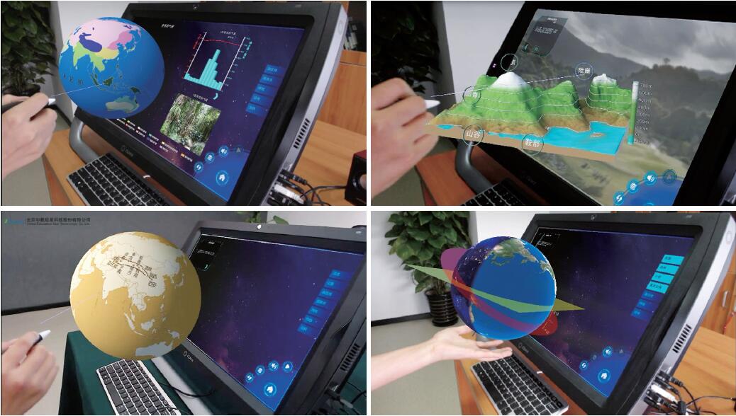硬件以桌面級便攜式一體化虛擬現(xiàn)實設(shè)備為核心,軟件包含地理、歷史、物理、化學、生物、自然科學和創(chuàng)客等多種學科教學體系。