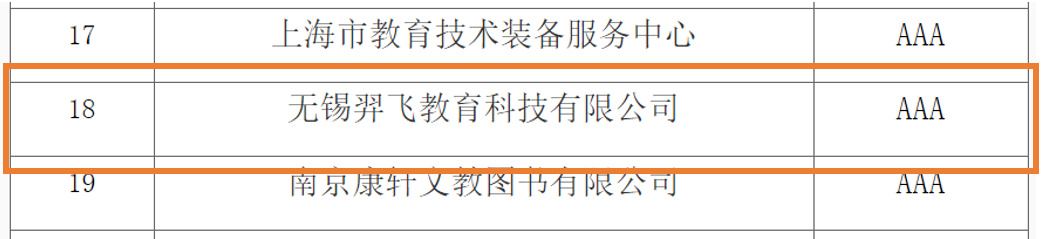 近日,2021年教育裝備行業(yè)企業(yè)信用等級評價結果出爐,羿飛教育獲得AAA信用等級。