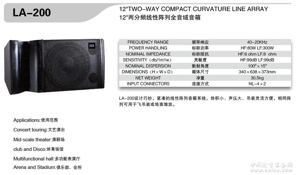 LA-200設(shè)計巧妙,緊湊的線性陣列音箱系統(tǒng),體積小,聲壓大,吊裝靈活方便,相同陣列可用于飛吊裝或地面堆放。