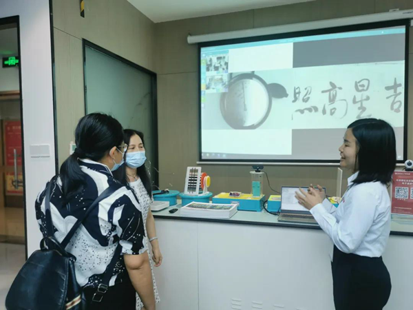 在現(xiàn)場(chǎng),工作人員還向現(xiàn)場(chǎng)嘉賓展示了與550多公里以外的廣州連線的具體情況。雖然相隔甚遠(yuǎn),但主課堂和分課堂可以共享同樣的課程內(nèi)容。