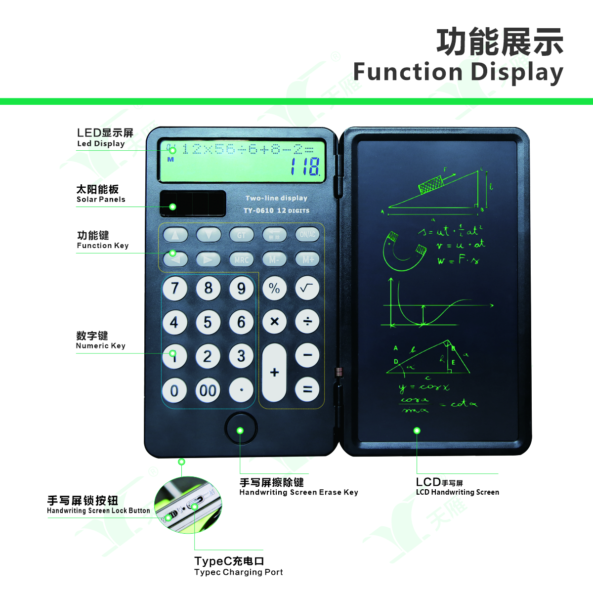 深圳市天雁電子有限公司是一家集設計、開發、生產、銷售和服務于一體的教育電子產品專業生產企業。公司主要產品有:“天雁“牌系列中小學數學教材配套用計算器;“天雁“牌學生計算器科學函數計算器圖形計算器辦公臺式計算器手寫板計算器