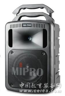 產品詳細介紹咪寶MIPRO MA-708無線擴音機,采用號角式高音及8吋中低音2分頻喇叭、120W功率輸出,內建充電式電池,UHF16頻道雙接收模塊及CD/SD卡錄放音座。首創主機總音量采用數字控制,除了可以手動控制音量大小及靜音之外,并且可使用專用ACT-3Ha無線麥克風遙控總音量大小。 主要參數: 輸出功率 120W(rms)/4Ω,170W(max)/4Ω T.H.D. 低于1頻率響應 50Hz~18KHz 喇叭 1吋高音號角式,8吋中低音紙盆式。 分頻點 2.8KHz / -12dB Oct 音源輸入 兩個有線麥克風輸入,采用XLR與6.3Φ PHONE型插座。一個LINE輸入,采用RCA插座;兩個無線麥克風輸入;全部獨立音量控制。 音源輸出 一個REC輸出,采用RCA插座。 主音量控制手動及無線數位式遙控音量及靜音,具有LED顯示。 CD/MP3播放座 CDM-5/CDM-7播放座 無線接收模組 可裝配兩組UHF PLL、具有ACT功能、自動選訊接收模組。 頻率范圍 620~934MHz 頻寬 24MHz 預設頻率 可切換16組互不干擾頻率 天線 隱藏式 使用特點 拖拉及手提高效率多功能無線擴音 電源供應 內建12V/4.5AH充電式電池2只及100~240V交換式AC電源供應器 充電器 內建智能型充電器 充電及使用時間 充電8小時(自動充電管理)可連續待機7小時 尺寸 336(寬)×545(高)×325(深)mm 重量 約16.3公斤 搭配發射器可搭配兩個ACT系列手握式或佩掛式發射器 認證 各項規格如有誤差,以實際產品為依據。 |