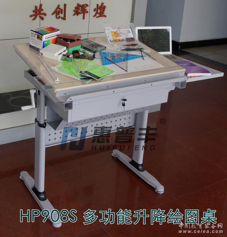 技術結構參數: 1)整體鋼架結構: 采用支、右支架全鋼結構(外管40×90橢圓鋼矩管,內管70×30橢圓鋼矩管),可調節主桌面傾角,并可手搖升降調節主桌面高度;含多個儲物空間結構; 2)繪圖主桌面板(可傾角調節0-80°)及副桌面板 配置繪圖主桌面板(900×600mm)和可折疊的副桌面板(400×550mm),繪圖主桌面板左、右雙側背部采用“惠普”繪圖專用傾角調節鉸鏈,同步控制調節傾斜度調節0-80°;主桌面板下端配置有筆槽并可擋住繪畫繪圖板或者丁字尺等物品;側邊配置有可折疊的副桌面板,不用時下掛側邊節省空間。 3)主桌面高度可升降調節 繪圖桌面板可通過手搖升降器,調節高度760~1100mm,滿足不同繪圖作業高度的需要。 4)儲物空間 主桌面板下端配置有筆槽,槽二端采用圓弧安全角處理,筆槽高出桌面可擋住繪畫繪圖板或者丁字尺等物品;主桌面板背后儲物廂和抽屜及圖紙儲物桶等四處儲物空間。 5)穩定性調節腳墊 底部采用塑膠木水平調整螺絲腳墊,可防滑、防噪音,具有調節功能,保證桌面穩定和結構的堅固。
