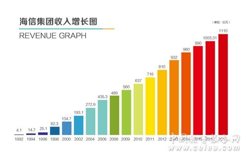 海信集團作為一家成立于1969年的公司,前身是是青島“無線電二廠”,走過49年的風雨歷程,現已擁有全球70000多名員工,并擁有海信、科龍、容聲3大馳名商標,旗下兩家上市公司——海信電器和海信科龍。海信已成為覆蓋多媒體、家電、IT智能信息系統和現代地產等多個產業的大型企業集團。海信產業布局全球,現擁有墨西哥、南非、捷克、新澤西4大海外生產基地,加拿大、美國、歐洲、以色列以及日本5大海外研發中心。2017年,海信年銷售額再創新高,銷售收入1110.65億元。