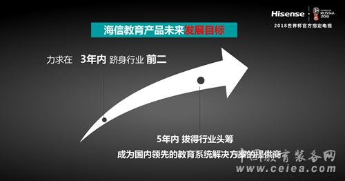 基于此,海信完全有能力實現在教育產品領域的未來發展目標:力求三年內躋身行業前二,五年內拔得行業頭籌,成為國內領先的教育系統解決方案的提供商。