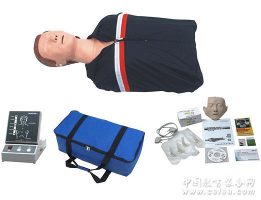 主要功能: 模擬標準氣道開放顯示。 人工手拉胸外按壓顯示報警: 1. 按壓位置正確、錯誤的指示燈及錯誤的報警。 2. 按壓強度正確(5~6cm區域)、錯誤(<5cm<區域)的顯示分別由指示(黃、綠、紅)指示燈移動的動態反饋顯示CPR按壓深度及錯誤的報警提示。 人工口對口呼吸(吹氣)顯示報警: 1. 吹入的潮氣量≤500ml~600ml≤的顯示由指示(黃、綠、紅)指示燈移動的動態反饋顯示吹氣量度及錯誤的報警提示。 2. 吹入的潮氣量過快或超大,造成氣體進入胃部指示燈顯示及報警。 按壓與人工呼吸比:30:2(單人或雙人) 操作周期:按壓與人工吹氣30:2五個循環周期CPR操作。 操作頻率:最新國際標準:100次/分。 檢查瞳孔反應:模擬瞳孔由一只散大與一只縮小的比較認識。 電源狀態:采用220V電源,經過穩壓器穩壓輸出電源6V。 材料特點: 面皮膚、勁皮膚、胸皮膚、頭發,采用進口熱塑彈性體混合膠材料,由不銹鋼模具、經注塑機高溫注壓而成,具有解剖標志準確、手感真實、膚色統一、形態逼真、外形美觀、經久耐用、消毒清洗不變形、拆裝更換方便等特點,其材料達到國外同等水平。 標準套配置: 高級膚色半身人體模型一具; 高級顯示器一臺; 豪華手提袋; 屏障面膜(50張/盒)一盒; 可換肺囊裝置四套; 可換面皮一只; 保修卡、合格證; 使用手冊一本。 2010國際最新操作指南光盤1盤;