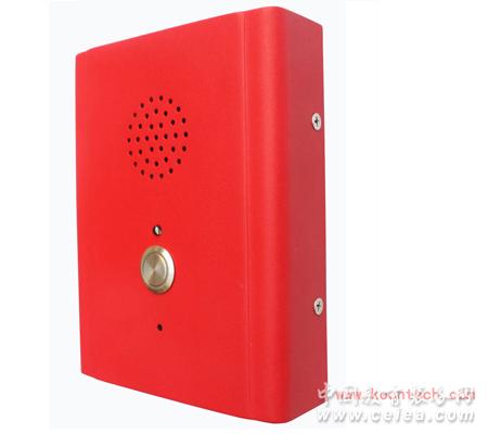 產品詳細介紹 本電話機可與大部分模擬或數字電話程控交換機兼容。適用用于各種工作環境下的語音通訊,并可在公共通訊網絡或專網上實現點對點(單鍵)通話。 1、產品特點 ◆ 一鍵撥號 ◆ 切換監控畫面 ◆ 來電閃燈提示 ◆ 通話時間限制 ◆ 自動掛機 ◆ 高防水、防塵性能,全冷軋鋼板機殼,防護等級達到IP55。 ◆ 高耐用性,線材采用鐵氟龍線,抗油、抗強酸、抗強堿、抗強氧化劑符合軍工標準GJB-773及UL1332的要求。 2、應用范圍 用于電梯、高速公路客戶中心、火車站、機場、碼頭、銀行、住宅小區,體育館,商場等撥打求救電話 3. 技術參數 溫度:-35℃~75℃ 相對濕度:10%~95% 大氣壓力:86~106 Kpa 環境噪聲:≤60dB(A) 振鈴聲級:70dB(A) 脈沖撥號:撥號脈沖的斷續比為:1.6±0.2︰1.0 撥號脈沖速度:10±1次/秒 雙音多頻(DTMF)撥號: 頻偏:≤1.5%; 低頻群電平:-9±3dB;高頻群電平:-7±3dB 頻率組合中的高低電平差:2±1dB; 諧波等總失真至少比基波電平低20dB 通話傳輸指標:SLR≤12,RLR≤-1,STMR≥10,輸出阻抗:600Ω