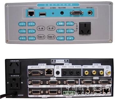 技術(shù)參數(shù): CM-2300集成了一系列高性能的控制模塊,無(wú)需外加專(zhuān)業(yè)設(shè)備, 即可滿足大部分控制系統(tǒng)的控制要求; 同時(shí)又可進(jìn)行一定程度的擴(kuò)展,即可外接一系列控制設(shè)備, 以滿足更高要求的控制要求。 1、 集成3X1音視頻切換矩陣,視頻帶寬達(dá)100MHz 。 2、 集成3選1分2 VGA/XGA信號(hào)切換矩陣,帶長(zhǎng)線驅(qū)動(dòng),可以對(duì)臺(tái)式電腦、 手提電腦等VGA/XGA信號(hào)源進(jìn)行實(shí)時(shí)切換。 3、 內(nèi)嵌式紅外學(xué)習(xí)器和2路紅外線輸出通道 采用了優(yōu)化的紅外學(xué)習(xí)算法和高性能處理器, 能學(xué)習(xí)各種設(shè)備的紅外控制碼。 內(nèi)置1路可編程紅外發(fā)射端口, 全面解決了紅外信號(hào)控制中的各種的問(wèn)題。 4、 集成2路話筒輸入和電子音量調(diào)節(jié)模塊, 可對(duì)輸出環(huán)境的音頻信號(hào)進(jìn)行音量多級(jí)連續(xù)調(diào)節(jié)。 5、 內(nèi)置強(qiáng)電控制模塊 可分別控制投影機(jī)電源和電動(dòng)屏幕升、降電源。 投影機(jī)電源帶延時(shí)關(guān)機(jī)功能,可有效保護(hù)投影機(jī)。 6、 集成3路獨(dú)立可編程RS-232接口, 可以RS-232碼控制投影機(jī)及其它具通訊接口之裝置 7、內(nèi)置TCP/IP網(wǎng)絡(luò)控制模塊,直接連到校園網(wǎng); 投影機(jī)RS-232控制代碼可以批量錄入,操作方便。 8、帶有遠(yuǎn)程電腦自動(dòng)開(kāi)關(guān)機(jī)控制接口, 老師上課不再需要在講臺(tái)里找電腦開(kāi)關(guān), 國(guó)內(nèi)首家推出"真正地全自動(dòng)授課模式"。 9、內(nèi)置2路I/O接口,可連接門(mén)磁開(kāi)關(guān)、防盜設(shè)備; 內(nèi)置1路+DC12V電源,可連接電控鎖 10、 批量生產(chǎn),有較高的穩(wěn)定性和性價(jià)比。 |