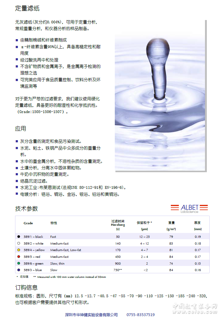 無灰濾紙(灰分約0.004%),可用于定量分析,常規(guī)重量分析,和儀器分析的樣品制備。