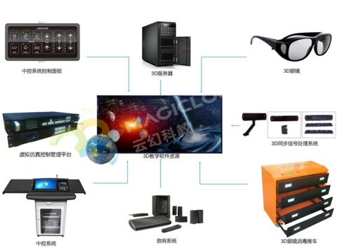 云幻科教3DLED大屏智能教室解決方案,采用高密度小間距3DLED屏幕,搭配中央控制系統(tǒng)、3D服務器、3D信號處理器、3D互動講臺、3D紅外眼鏡、消毒推車、音響等構(gòu)成。3D立體感激發(fā)、吸引觀眾達到前所未有的深度,成為教學的理想工具。