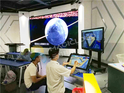 廣東省東莞市厚街鎮(zhèn)竹溪小學是一所辦學高起點、高要求、教育特色彰顯、充滿創(chuàng)新活力的現(xiàn)代化學校。云幻科教根據(jù)學校的定位高、場地現(xiàn)場較大和資金預算充足等情況,提供了以3DLED大屏為主,輔以2塊2D投影幕布的展現(xiàn)形式,搭配小學3D教育資源庫、專題3D教育資源和豐富娛樂互動資源的3DLED大屏智能教室綜合解決方案。