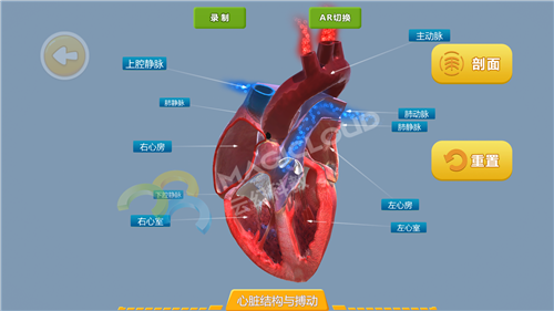 虛擬仿真實驗軟件中的器材除了本身功能以外,還應該利用其虛擬仿真技術展示出常規(guī)實驗做不到的內(nèi)容,根據(jù)不同的實驗特性增加不同的功能。如物理中不可見的磁感線、力、聲音等都可以通過輔助線的形式展示出來;化學中氣體粒子、反應過程等通過微觀展示出來;生物課程中心臟與血液循環(huán)的血液流動模擬等,便于學生學習與理解。