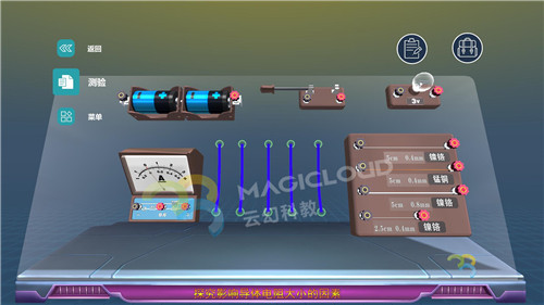 模擬實驗:初中物理《探究影響導體電阻大小的因素》,虛擬仿真實驗環(huán)境臨場感、帶入感強,視覺、聽覺等多種形式感知信息,讓學生猶如真實的進行互動操作和檢測