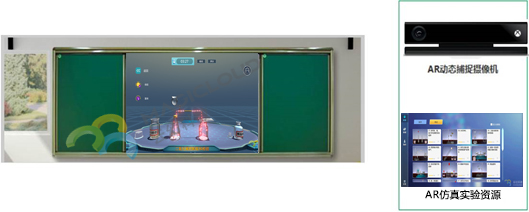 多媒體教學觸控一體機是集成大屏高清顯示、交互式電子白板、電腦、電視、音箱和網絡傳輸等多項功能于一身的多媒體教學演示與操作平臺。通過搭配的互動教學軟件與人性化的觸控操作,可便捷調用多媒體素材資源,為課堂教學提供優秀的大屏幕顯示互動授課體驗。動態捕捉攝像機和多媒體觸控一體機的結合是實現虛擬實驗教學的必要硬件條件。系統平臺通過實驗資源和動態捕捉攝像機的定位追蹤,在觸控一體機上實現虛擬世界與現實世界的完美結合,學生可盡情享受虛實結合所帶來的科技感,教師亦可放心大膽的、無所顧慮的進行實驗操作練習。