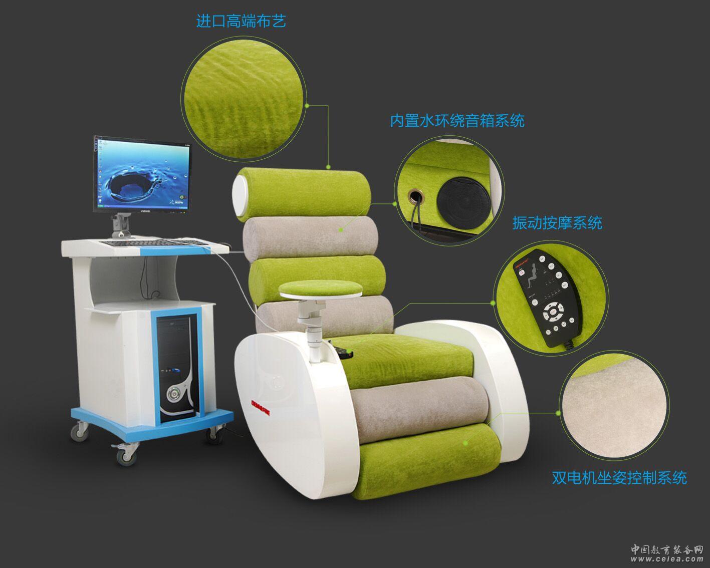 一、【身心反饋B型音樂放松椅】產品描述 產品描述:1、音樂隨動音樂放松椅 1臺:進口高端布藝沙發,實木鋼琴烤漆左右扶手,木和布藝的完美結合帶獨立萬向舒適圓形手托符合人體工學設計。 a硬件參數:產品尺寸:長112CM×寬90CM×高105CM(椅背收起) 長170CM×寬90CM×高60CM(椅背展開) 產品重量:凈重:45KG; 承載量:100KG 電 源:220V(50Hz) 扶手高:65cm;扶手寬:30cm ;坐高:45cm b震動按摩系統:電腦控制頸部、背部、腰部按摩促進血液循環,加強放松效果。 c 遠紅外電磁療加熱系統,可以增強放松和舒適度。 d音樂隨動系統:可以根據音樂的起伏激發非偏轉震子運動。增強音樂穿透力,使心理音樂更具有表現力。 e高度集中的控制系統:腿部、背部坐姿調節和心理音樂播放;按摩控制;遠紅外電磁療均由一個遙控器操控,比起以往獨立控制更為人性化。 f擁有雙電機坐姿控制系統:椅子背部和抬腳板獨立的點擊控制,可以單獨完成坐姿調節,可以根據身體需要貼切的找到舒適坐姿。 g音響系統:內置山水環繞音響系統 2、指夾式生理指標采集儀 1個:不少于3米專業指脈式脈博指數、壓力指數,生理指標采集監控器,內置式數模轉換器,多功能信息轉換系器以及數據傳輸線。 3、品牌身心反饋主機+19寸液晶顯示器1套(內置a:音樂反饋系統1套 b:心理視聽資料 1套)