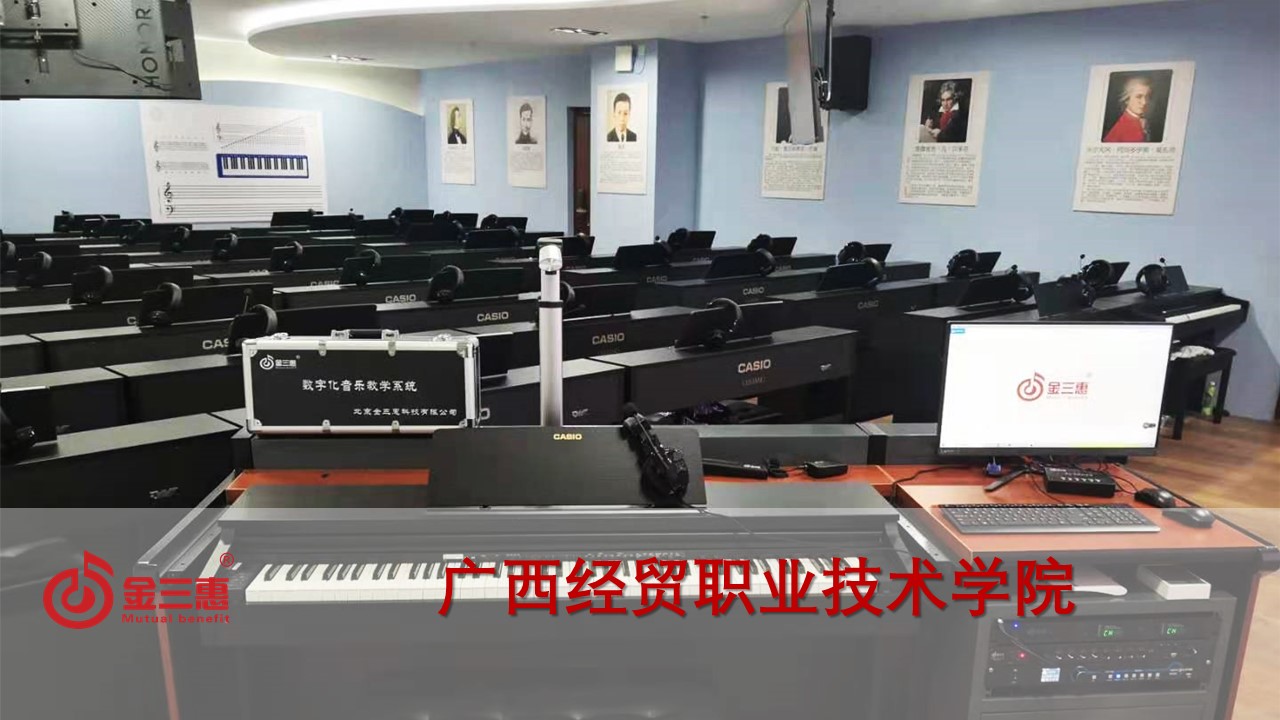 廣西經(jīng)貿(mào)職業(yè)技術(shù)學(xué)院的電鋼琴教室正式開(kāi)始使用,本校數(shù)字化音樂(lè)教室由北京金三惠科技有限公司負(fù)責(zé)提供、安裝、培訓(xùn)。