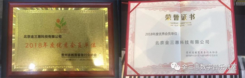 金三惠榮獲:貴州省教育裝備行業協會“2018年度優秀會員單位”榮譽。