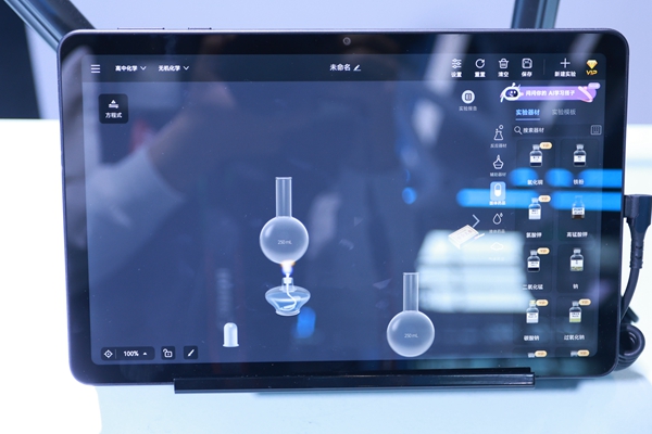 第83屆中國教育裝備展示會上,童園科技理化生智能實驗室、中考實驗操作考評系統、AI評分系統等教育信息化系列產品。