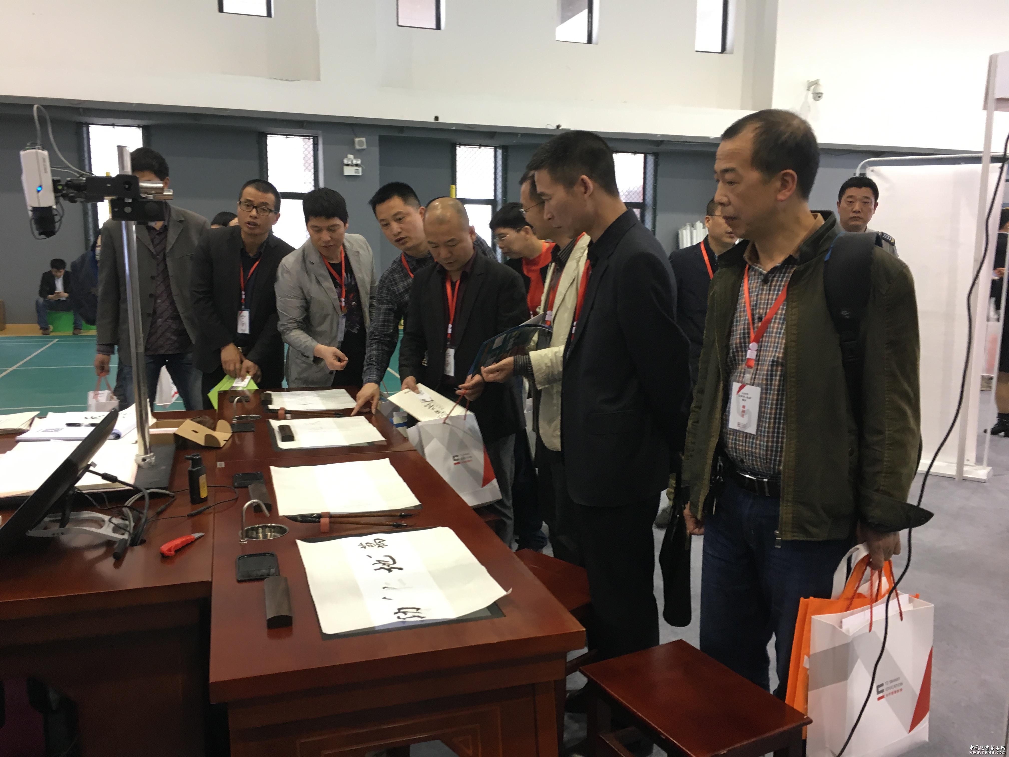 開幕式后與會領導一行首先參觀了北京華文眾合科技有限公司展出的智云數字書法教室展位,在工作人員的講解下,參觀領導饒有興致地紛紛體驗,并給予了高度評價。在了解到全國多所中小學在使用公司產品時,鼓勵公司要加大市場開拓力度,力爭為浙江地區中小學提供產品支持和技術服務。來自各市區學校校長,書法老師,現場觀眾爭相體驗,展位前人流不斷。新穎的學習方式,便捷的操作模式,讓現場觀眾流連忘返。