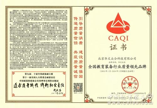適逢剛剛過去的3.15消費者權益日,北京華文眾合科技有限公司獲得了與消費者權益息息相關的殊榮——全國教育裝備行業質量領先品牌。