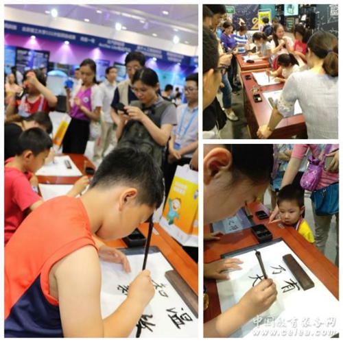 軍人,學生,小朋友等各種年齡各種職業的體驗者絡繹不絕,把展位圍得水泄不通,爭相揮毫潑墨,都想先體驗一把數字書法的魅力,寫一張自己滿意的作品。