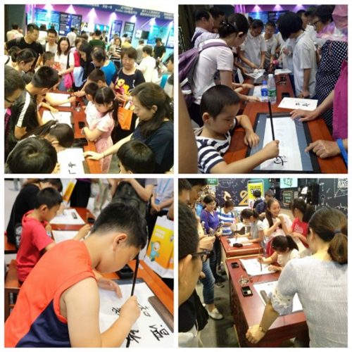 5月19日,華文眾合數字書法教室出展第一天就榮登北京科技周官方微信報道榜單。展出期間,華文眾合數字書法教室展位吸引了眾多慕名而來的參觀體驗者,同時也受到了家長朋友、展商朋友、軍人、外國友人、退休老人、學生、小朋友等各職業各年齡段體驗者的一致好評。小朋友非常樂意坐好靜下心來寫一幅自己滿意的書法作品,這一切緣于“數字書法”的魅力。