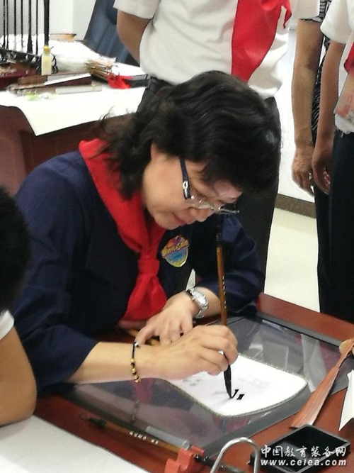 活動當天,東城區代區長金暉蒞臨參觀指導,并親自體驗了“智云+數字書法教學系統”。