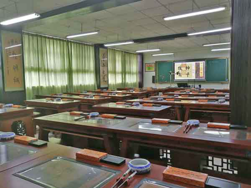 華文眾合數(shù)字書法教室使用傳統(tǒng)的筆、墨、紙、氈來進行教和學,每位學生都有一臺交互式數(shù)字書法臨摹臺,通過臨摹臺可以清晰看到教師從整體到細節(jié)的書寫示范,通過臨摹臺學生可以播放書法家的書寫視頻,講解書法的執(zhí)筆運筆,分析漢字的字形結構與篇章布局,幫助學生理解書法的奧妙。德昌縣第二完全小學的學生們可以通過臨摹臺查閱臨摹古代書法大家的真跡作品,通過趣味動畫視頻了解書法知識和典故,在交互式數(shù)字臨摹臺上觀看名家書寫示范視頻,使用邊看邊練、六步練習法等多種方式進行學習。