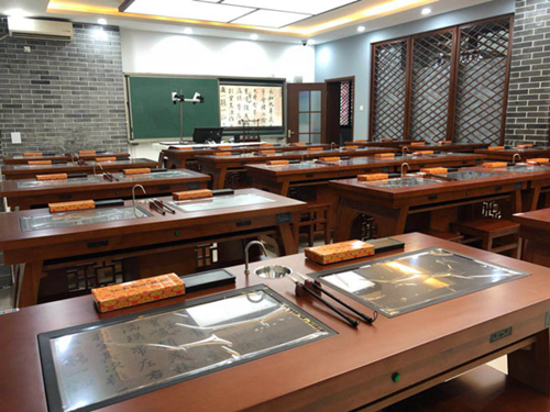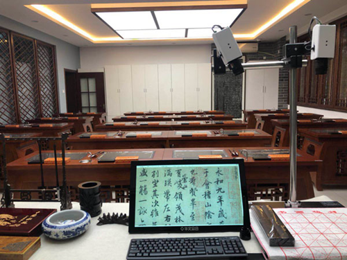 在數字書法教室上課時,每一位學生都有一個交互式數字臨摹臺,充分利用數字書法教學系統豐富的資源:如歷代碑帖、名家書寫視頻、名家研發的書法課程、名家課堂視頻、書法故事、動畫等,讓學生自主學習和練習,并能更好的培養興趣。通過直播系統可以幫助學生在臨摹臺前,讓每一位學生都能夠近距離、多角度、清楚地觀看老師在講臺示范書寫的字。實現了“書法名家進課堂”以及“一對一教學”的效果,大幅提升書法教育的質量和效率。