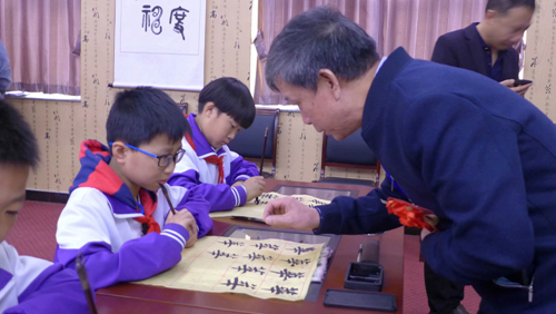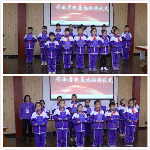中國書協河北省書法考級中心曹曉林主任為北新藝術小學在書法考級中榮獲二級、三級的學生頒發了證書
