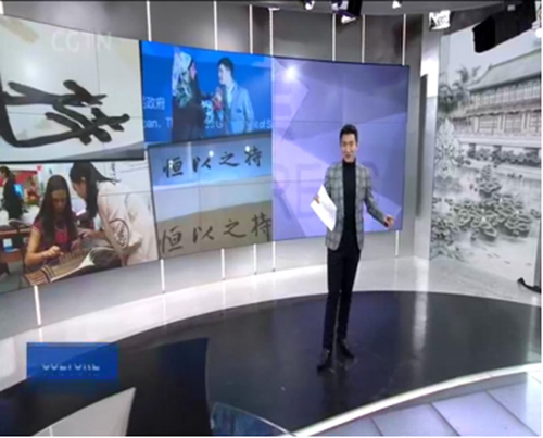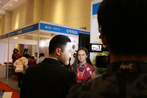 CGTN首席記者孟慶生大會現(xiàn)場針對華文眾合智慧書法教室進(jìn)行采訪