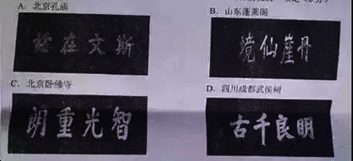 問:許多名勝古跡都有名人題寫的匾額,這些匾額上的字具有較高的書法藝術價值,但有的字卻不符合現代規范漢字的書寫要求。下列匾額屬于這種情況的一項是( )