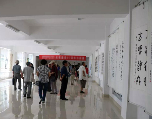 稍事觀察,便可發(fā)現(xiàn)教學樓宇名亦為本校學生手寫。著眼之處,都是學生的手跡,校園內張貼的,樓道內、樓梯墻上懸掛的是學生的書法作品。