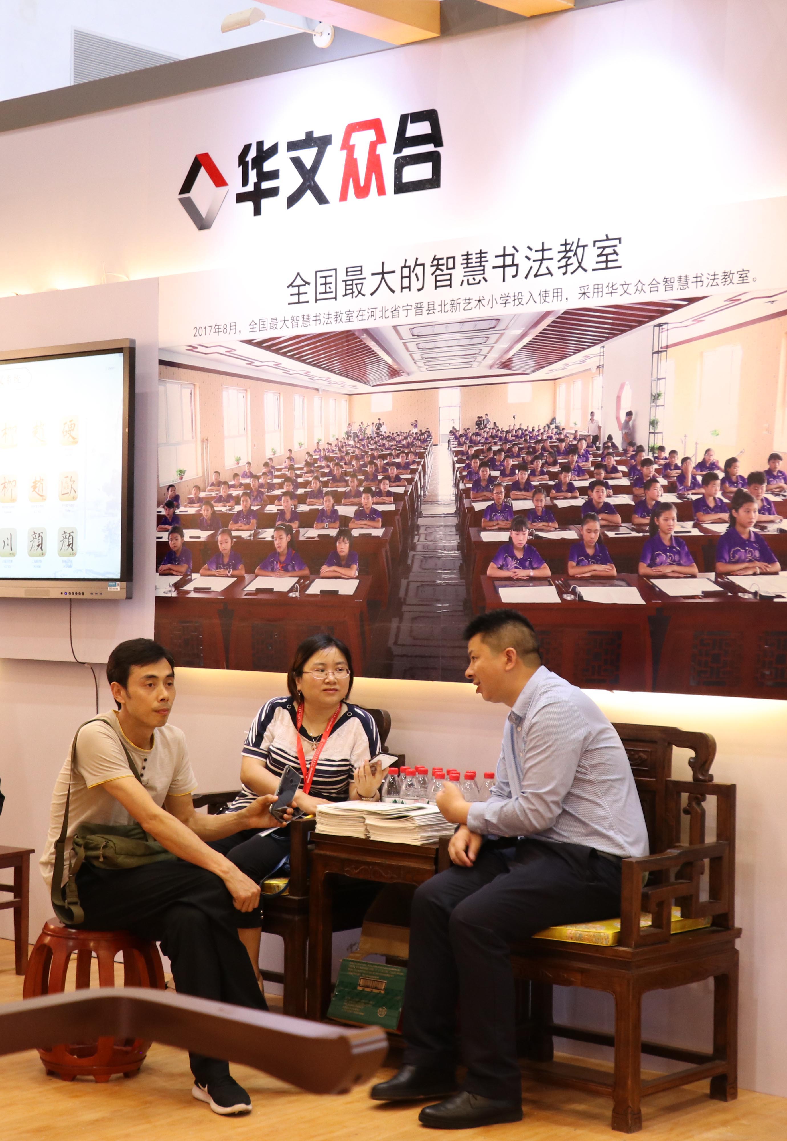 華文眾合攜第五代智慧書法教室參加,展會上推出了新的軟硬件。華文眾合展位人流如潮,參觀者絡繹不絕、體驗者陶醉其中。