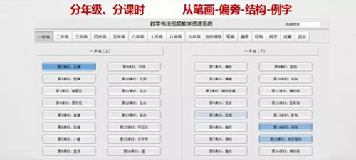 基于教育部《中小學書法指導綱要》(教基二{2013}1號)文件,華文眾合聯合多方力量開發智能課程,兼容教育部審核通過11套書法教材,涵蓋小學一年級到中學九年級的全部課時,從筆畫-偏旁-結構-例字循序漸進安排學習,解決了當前書法教育面臨的師資缺位、教學資源匱乏等難題。