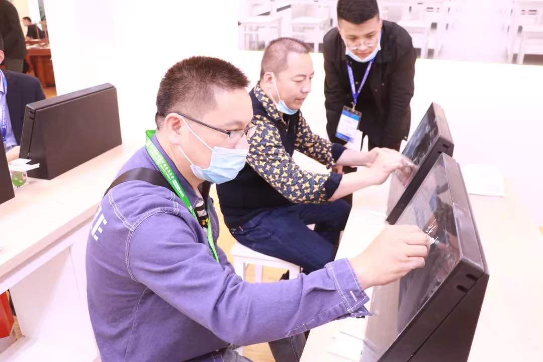 北京市教育裝備行業協會會長柴旭津體驗華文眾合智慧粉筆教室