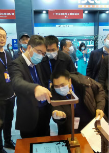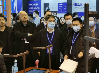 ▲華文眾合工作人員向浙江省教育廳副廳長(zhǎng)陳峰講解設(shè)備