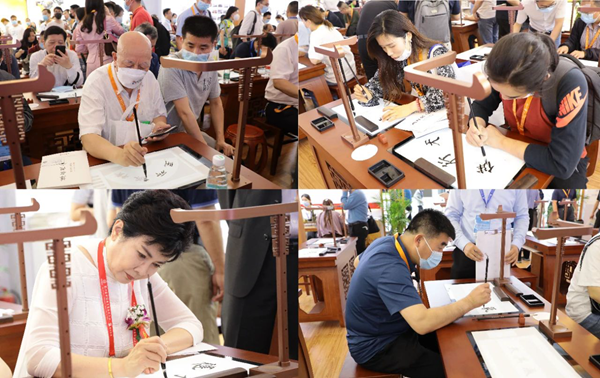參觀者接連不斷地走進華文眾合展位,通過使用第七代智慧書法教室,體驗者真切感受到智慧書法教學的便利。華文眾合希望能用更加智慧的書法教學設備實現弘揚書法傳統文化的美好愿景,眾心合力,弘揚華文!