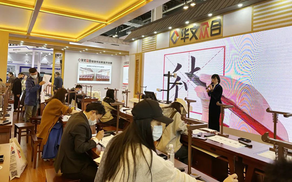 作為智慧書法教育裝備領(lǐng)軍品牌,華文眾合攜明星產(chǎn)品第8代智慧書法教室及智慧粉筆教室亮相本次展會。
