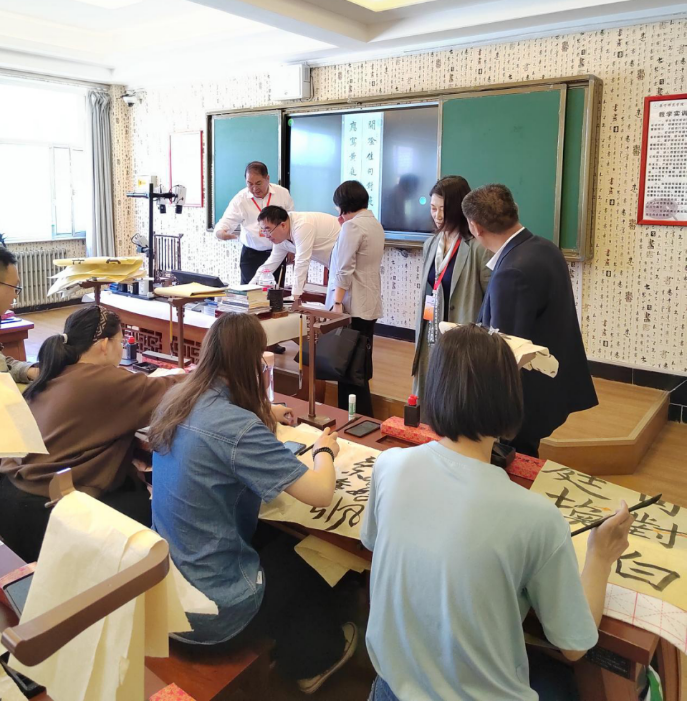 沈陽師范大學原副校長關松林教授、華東師范大學亞洲數學教育中心主任范良火、長春師范大學數學學院院長劉仁云;烏蘭察布副市長雷昆,烏蘭察布市教育局副局長王冬妮蒞臨集寧師范學院書法教室參觀考察。黨委書記朱玉東、校長劉春、副校長李景杰、文學院院長郭鵬、書法老師郝青山陪同參觀。