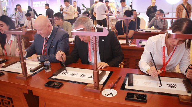 領導蒞臨華文眾合展位指導、體驗