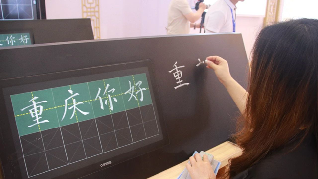 華文眾合發(fā)布的智慧粉筆教室為國內首創(chuàng),填補了國內基于交互式粉筆臨摹臺的智慧粉筆教室的空白,以國內師范院校的三筆字教學為導向,通過交互式粉筆臨摹臺的專利技術,讓學生用普通粉筆即可直接在臨摹屏上書寫,還原了粉筆書寫的體驗,達到邊看邊練的效果。