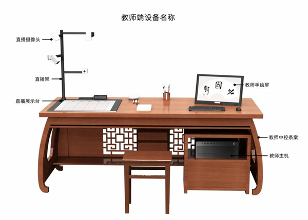 教師中控系統是教師進行書法教學的核心操作終端,由教師主機、教師手繪屏、鍵盤、鼠標、教師中控條案構成。