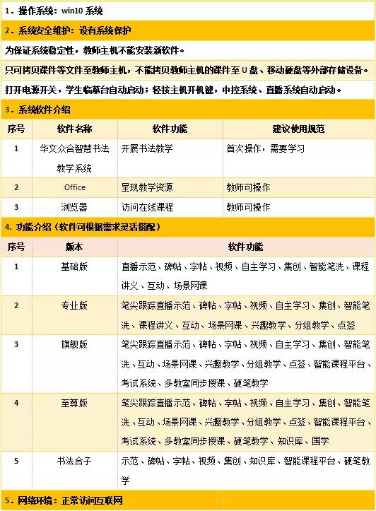 華文眾合智慧書法教室的主要設備包括教師桌、教師中控系統、直播系統、學生桌、交互式數字臨摹臺、智慧大屏(或投影儀)等。