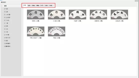 (2)選擇練習(xí)模板,有扇面、團(tuán)扇、條幅、橫幅、斗方、對(duì)聯(lián)、中堂。模板為內(nèi)置模板樣式,可自行編輯保存。