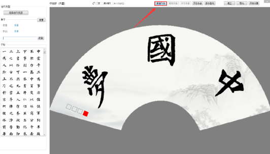 (4)選中例字,在模板上合適位置放置例字;系統(tǒng)會(huì)根據(jù)模板的不同自動(dòng)調(diào)整字的角度,左鍵選中拖動(dòng)可移動(dòng)例字,滾動(dòng)鼠標(biāo)滾輪可縮放例字;調(diào)整合適后,再選擇第二個(gè)字,將自動(dòng)匹配第一個(gè)例字的大小。排版完成后可點(diǎn)擊“添加標(biāo)簽”便于查找,點(diǎn)擊“保存作品”保存模板。