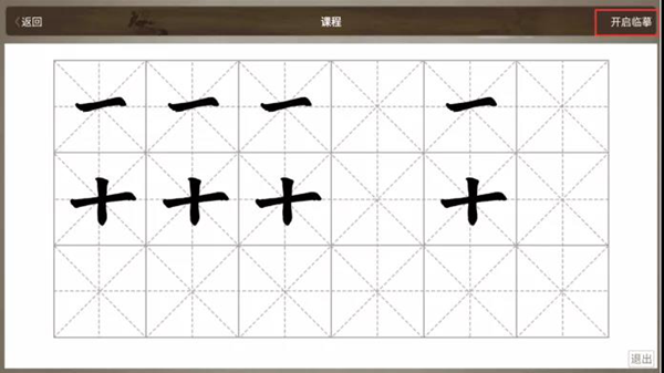 (4)示例:練習(xí)本課例字,點(diǎn)擊右上方開啟臨摹,屏幕觸控鎖定,亮度自動調(diào)亮,鋪上宣紙即可臨摹。